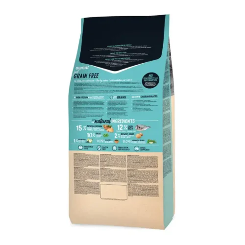 El pienso Ownat para gatos combina carne fresca, verduras de proximidad y conservantes naturales. Con versiones Grain Free y Sterilised, cubre desde gatitos hasta felinos senior sin renunciar a la filosofía mediterránea de la marca.