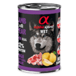Paté completo y nutritivo para perros adultos, elaborado con carne de cordero y fruta natural, ideal para una dieta equilibrada y de alta calidad.