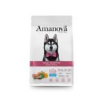Amanova Adult Sensitive Salmon Deluxe es una fórmula grain free hipoalergénica ideal para perros adultos con digestión delicada o necesidades específicas de piel y pelaje. Elaborado exclusivamente con salmón fresco como única fuente animal, este pienso aporta ácidos grasos Omega‑3, EPA y DHA, que contribuyen al cuidado de la dermis, la belleza del pelaje y la salud de las articulaciones. Además, contiene ingredientes funcionales como calabaza, brócoli y arándanos que refuerzan el sistema inmunitario y mejoran la salud general. La combinación de zinc y ácidos grasos contribuye a mantener piel y mucosas saludables. El producto es libre de harinas de carne y deshidratados, lo que lo convierte en una opción ideal para perros con sensibilidades.