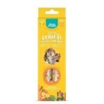 Coloca uno de los palitos en la jaula del conejo, cobaya o chinchilla para su consumo libre. Se recomienda ofrecerlo como snack complementario, no como alimento principal. Asegurar siempre agua fresca disponible y controlar la ingesta diaria. Producto diseñado para enriquecer la dieta de forma equilibrada y divertida.