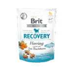 Brit Care Functional Snack Recovery es una golosina funcional semiblanda pensada para perros que necesitan apoyo nutricional tras realizar ejercicio o actividades intensas. Su fórmula incluye arenque, rico en ácidos grasos omega-3 que ayudan a la salud cardiovascular y al sistema nervioso. La manzanilla refuerza la recuperación con sus propiedades calmantes, mientras que el colágeno favorece la regeneración del sistema musculoesquelético. Además, el extracto de melón aporta antioxidantes que combaten los radicales libres y los lactobacilos inactivos mantienen un equilibrio saludable en la flora intestinal. Este snack, libre de cereales y papas, ofrece una nutrición de calidad con ingredientes naturales que contribuyen a un bienestar completo.