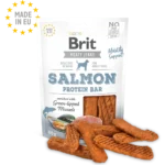 Brit Jerky Snack Salmon Protein Bar es un suplemento saludable, libre de cereales, colorantes, azúcares añadidos y organismos modificados genéticamente, asegurando un premio natural, sabroso y de alta calidad para perros exigentes.