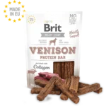 Brit Jerky Snack Venison Protein Bar es un suplemento saludable, sin cereales, colorantes, azúcares ni organismos modificados genéticamente, garantizando un premio natural y de excelente calidad para perros adultos.
