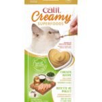 Snack cremoso de pollo con coco y kale para gatos, bajo en calorías y sin cereales