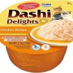 Inaba Dashi Delights Pollo En Caldo Para Gato es un delicioso snack húmedo japonés con alto contenido en proteínas y textura irresistible. Elaborado con ingredientes de calidad como pollo de granja y atún salvaje, este complemento aporta hidratación, sabor y nutrientes esenciales. Cada ración incluye caldo de bonito, copos naturales, extracto de té verde y vitamina E para reforzar el sistema inmunitario. Libre de cereales, carragenanos y colorantes, este topping natural mejora el apetito y la experiencia alimentaria del gato. Recomendado para gatos de todas las razas y edades, este alimento húmedo también puede combinarse con pienso para aumentar la palatabilidad.