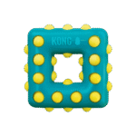 KONG Dotz Cuadrado está fabricado con una combinación de TPR (caucho termoplástico) y caucho espumado. Las dos capas de materiales diferentes crean texturas variadas que estimulan los sentidos del perro durante la masticación.