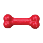 KONG Goodie Bone es un hueso fabricado con la fórmula exclusiva de caucho natural rojo KONG Classic. Sus orificios Goodie Gripper patentados convierten este entretenido juguete en un desafío dispensador de premios que estimula la mente del perro.