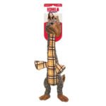 KONG Shakers Luvs Monkey está fabricado con 97% poliéster y 3% squeaker de plástico. El cuerpo alargado de felpa suave es resistente a las sacudidas y tirones, mientras que el squeaker interno de tono grave añade una dimensión sonora que mantiene el interés del perro durante el juego.