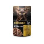 Paté de pollo con ternera desmenuzada para gatos adultos que aman las texturas variadas