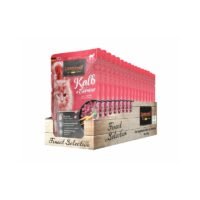 La fórmula contiene un 65% de carnes y subproductos animales, con 25% de vacuno como ingrediente principal y 34% de caldo de carne natural que proporciona sabor intenso e hidratación. Completado con 0,5% de minerales esenciales y 0,5% de cáscaras de huevo secas como fuente biodisponible de calcio y fósforo. Enriquecido con vitaminas, taurina y oligoelementos.