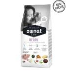 Ownat Care Renal es un alimento completo desarrollado para gatos adultos con sensibilidad renal. Su fórmula incorpora un equilibrio adecuado de minerales y un nivel moderado de proteínas de alta calidad, lo que ayuda a reducir la carga renal sin comprometer la musculatura. Incluye ingredientes naturales como pollo fresco, salmón, manzana, guisantes y arroz integral, además de extractos funcionales como harpagofito y cúrcuma que contribuyen a una respuesta inflamatoria saludable.