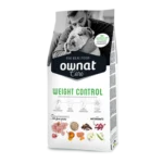 Ownat Care Weight Control está diseñado para cubrir las necesidades nutricionales de perros adultos que requieren controlar su peso. Con pavo fresco como proteína principal y un bajo contenido en grasas, ofrece un aporte energético moderado sin comprometer el mantenimiento muscular. Su alto nivel de fibra ayuda a generar saciedad, mientras que los ingredientes funcionales como la glucosamina, el harpagofito y el condroitín sulfato actúan en favor de las articulaciones.