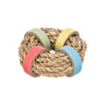Fabricado exclusivamente con materiales 100 % naturales: cartón reciclado y fibras vegetales provenientes de plantas marinas. Su diseño en forma de anillo entrelazado permite un manejo sencillo por parte del animal, adaptándose perfectamente a diferentes tamaños de roedores. Los colores rojo, verde, amarillo y azul aportan un toque llamativo sin utilizar colorantes artificiales.